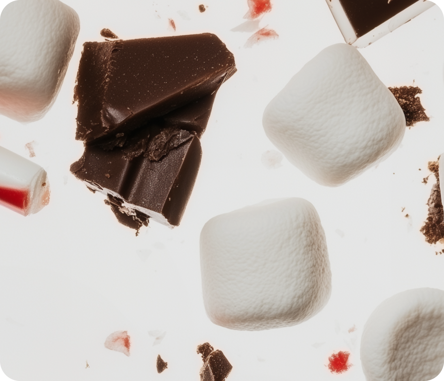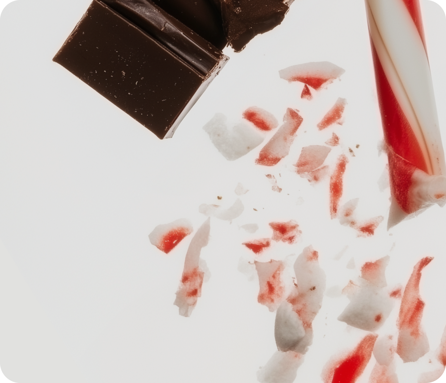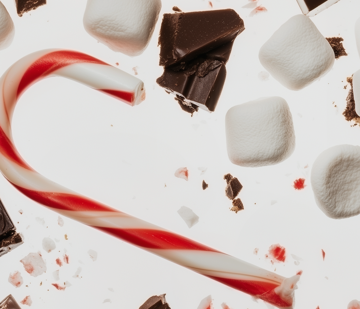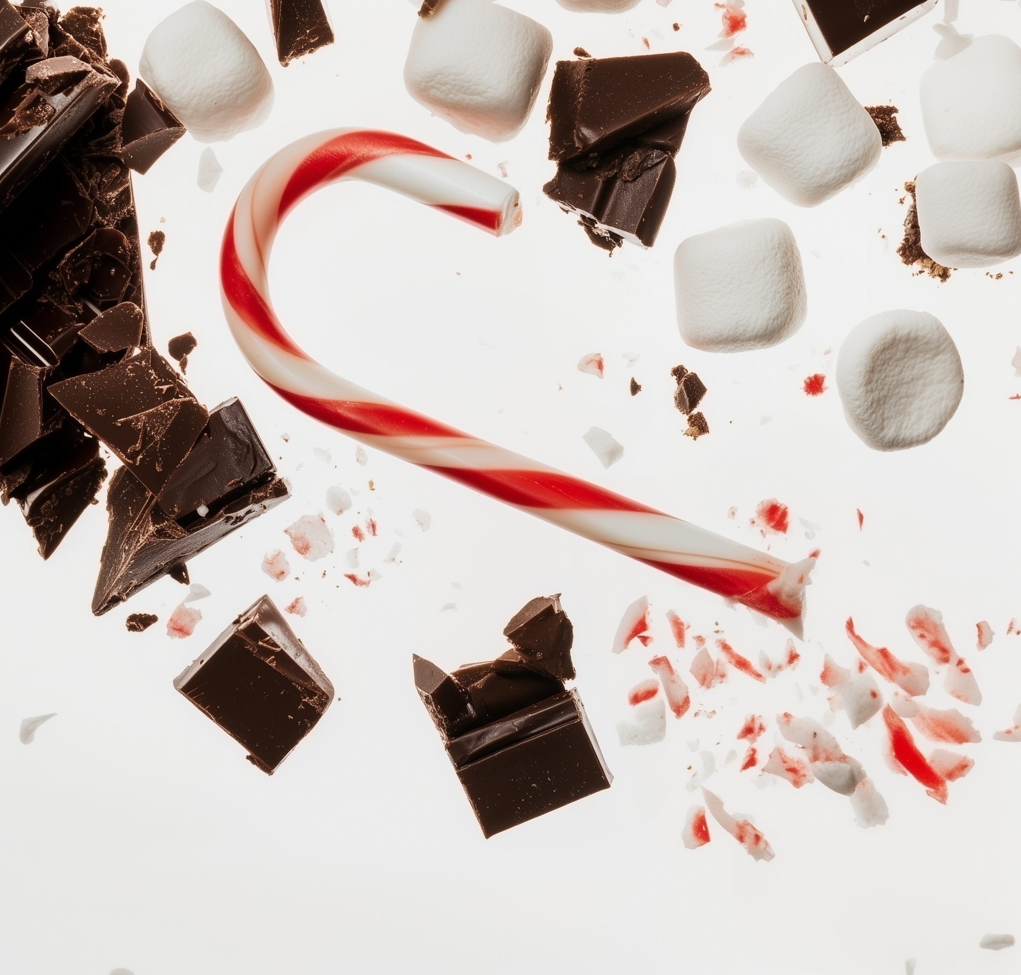 Frosty and enchanting. Crushed candy canes and rich chocolate blend with marshmallows, revealing the whimsical charm of a snow-dusted winter wonderland.